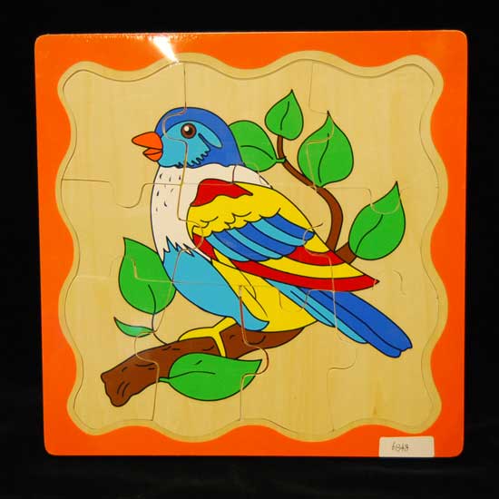 This wooden puzzle toy is painted with a colorful bird that is special and artistically appealing. The large-size jigsaw construction is designed to train up shape-recognition ability. This puzzle toy is a practical and educational game for small toddlers.