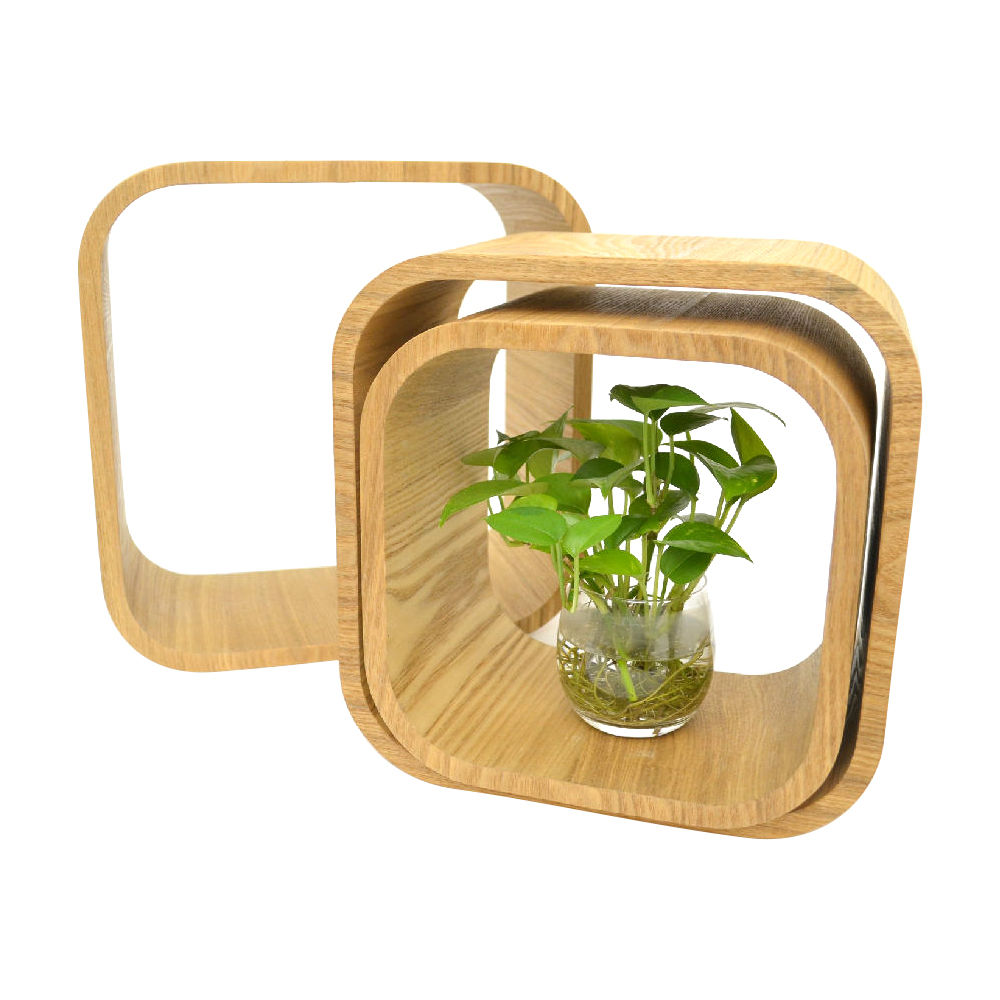 Adopt a love of natural and minimal form in your home with this 3-piece wooden shelf set. Crafted of 100% natural ashwood, the quadrilateral appeal of round-cornered finish brings a serene feel to complement interiors. It is perfect for displaying ornaments as well as potted plants.