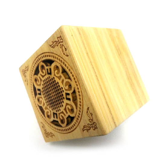 This is a wooden speaker that comes in a neat square shape. It is sturdily constructed for enhanced durability. This wooden speaker is an ideal choice for music lovers.