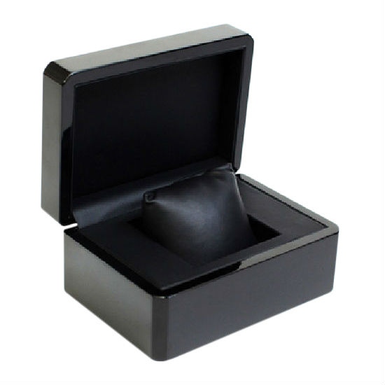 The featured box is made of wood and has a glossy black toned exterior. It is rectangular shape and has a soft cushion inside. This box is great for packaging and displaying products.