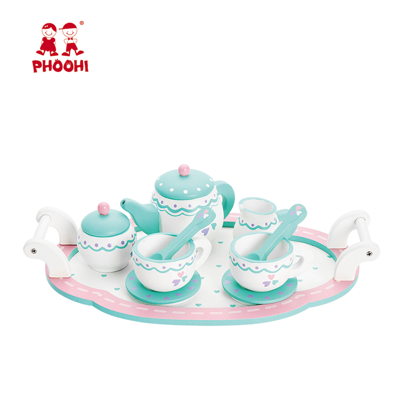 - High-quality mint green little girls role play children wooden tea set toy for kids 3+