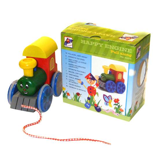 The featured item is a wooden toy. The toy is the engine of a toy train, and is suitable for children above the age 2.