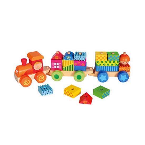 This block train set is painted with brilliant colored patterns for arousing kids’ interest. It is made of quality wood for sturdy construction. This stunning block train set serves as a great educational toy for kids.