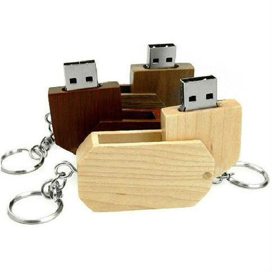 Factory supply high quality swivel wooden USB flash drive with key chain