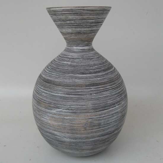 Featured here is a flower vase in a stylish curvy shape. Super fine striped patterns in mixed gray colors can fit into various interior settings. This exquisite vase looks great with or without flowers in it.