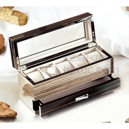 Wooden watch box with drawer