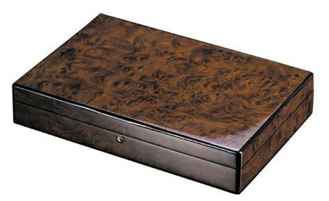 The box is in beautiful walnut burl color piano finish.