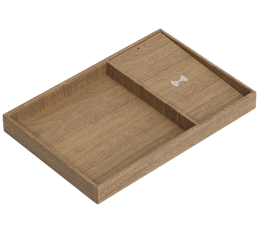 Wooden mobile phone Wireless Charger with storage tray