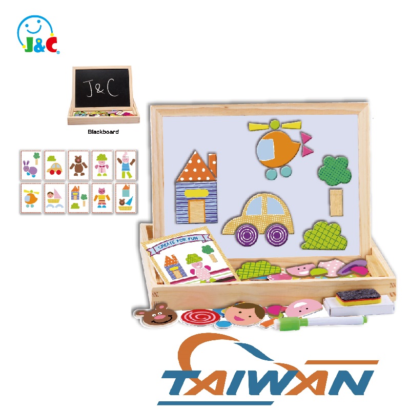 Wooden toy magnetic board puzzle game, double-side board, drawing sketchpad, writing, dry erase board, chalkboard, educational toy for kids