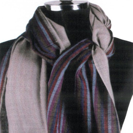 This is a high-quality wool scarf that is soft and comfortable to the touch. It is accented with colorful striped patterns for a decorative touch. This elegant wool scarf will keep you warm on cold days.
