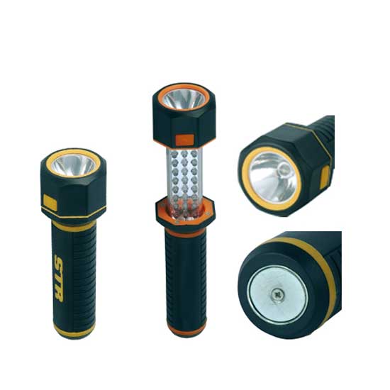 This work light is meticulously designed with a black rubber cover for offering soft and comfortable gripping. It adopts 27 LEDs built in the unique transparent tube for outstanding lighting efficiency. The magnetic base allows this work light easily to be attached to the ferrous metal objects.