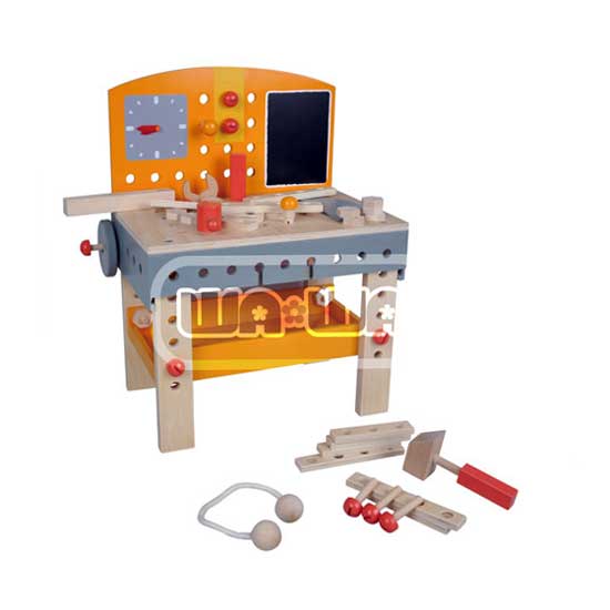 This is a toy work table with assorted accessories in different designs. It is made of high-quality wood and suitable for children aged 3 years and up. Develop the practical ability of your children and also let them have hours of fun with this sophisticated toy table.