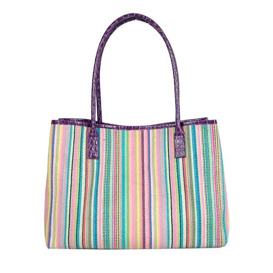 The woven handbag flaunts quality handles for enhanced durability. It comes with striped patterns in vibrant colors. This woven handbag is a great accessory for ladies.