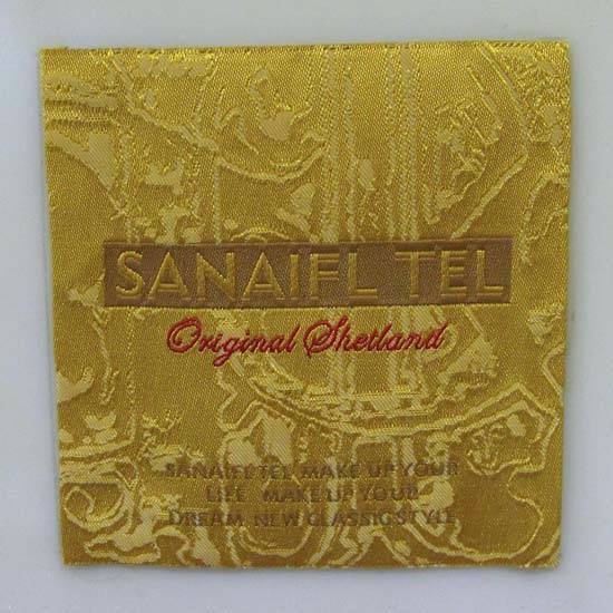 Featured is a square-shaped woven label in a stylish design. The golden geometric patterns add a sense of elegance to the entire piece. Logos and instructions can be embroidered on the label. This woven label is widely applicable in garments, handbags and toys.