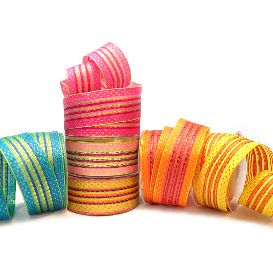 This is a collection of woven ribbons that comes with colorful dots and stripes. The wired edge shows a vigorous and vivid look. These detailed ribbons are ideal for gift wrapping and decoration.