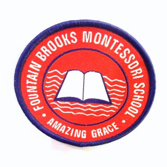 This woven school badge features an open book on top of sea waves. It is round in shape and features embossed trimming. All patterns and words are made with high-quality and durable stitching.