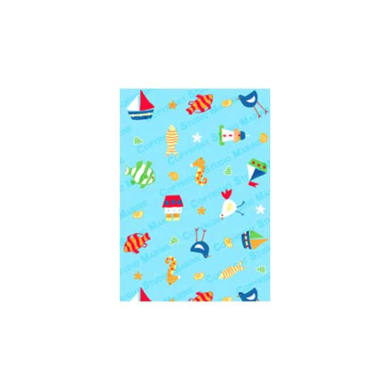 This gift-wrapping paper comes in an oceanic theme. It is vividly printed with elements like boats, ships, seahorses and fish in regular arrangement, flaunting a rich design. The aqua background makes an outstanding visual element.