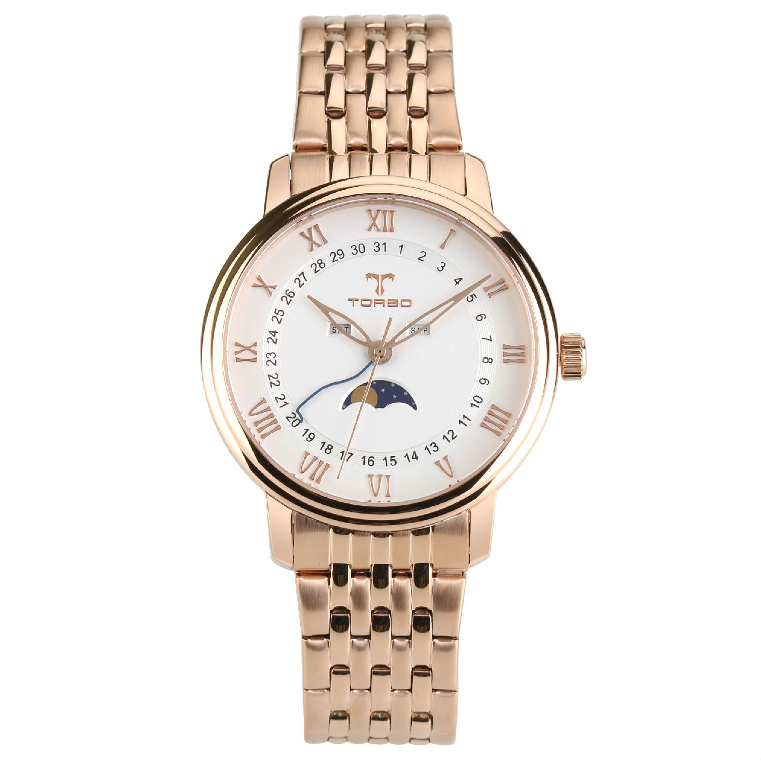 Characterized by a round dial with traditional Roman numeral markers, this watch combines essential functionality with full calendar data including date, day of week, month, and moon phase. Gleaming in the high-shine stainless steel construction, this luxurious timepiece exudes timeless sophistication to stand out on your wrist.