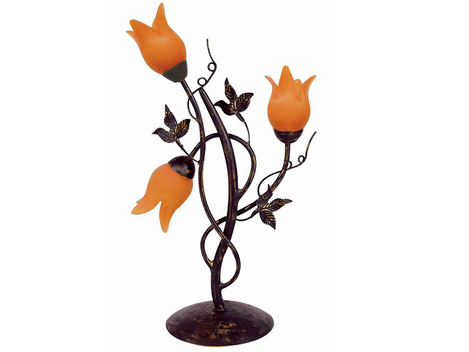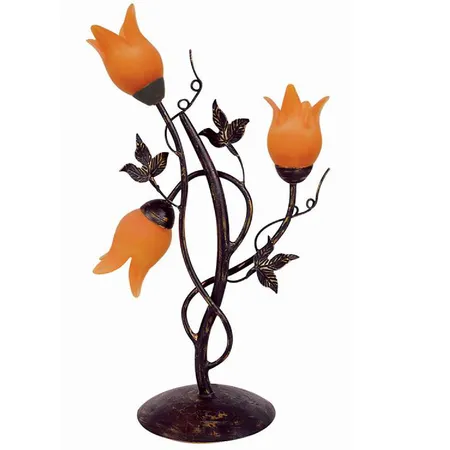Wrought iron floor lamp fixture with an artistic floral glass lamp shade