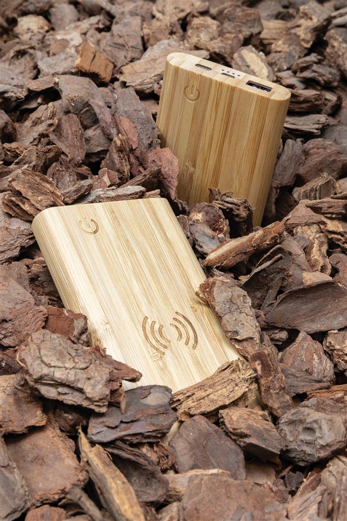 5000 mAh Powerbank with casing made from 100% FSC (R) certified bamboo;
