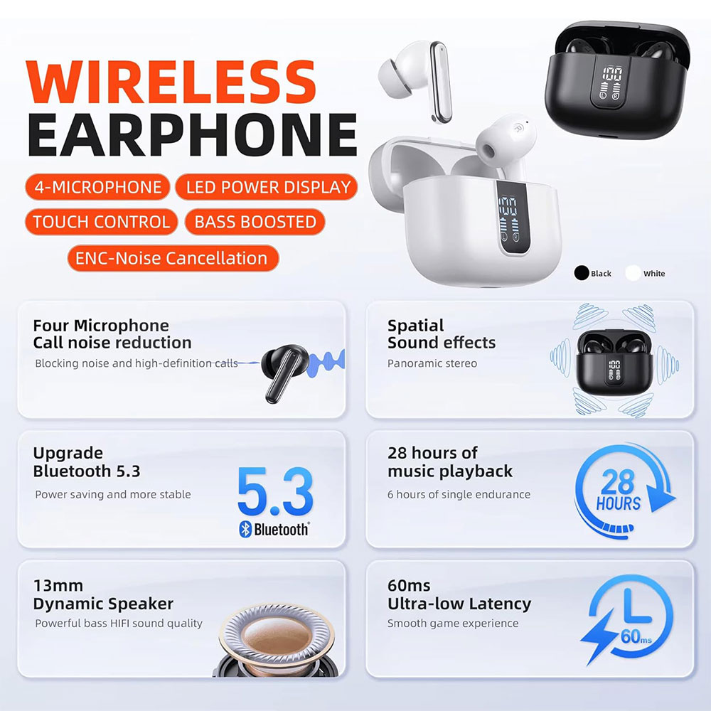 ANC + ENC dual mics noise cancellaing LED power display Private model patent