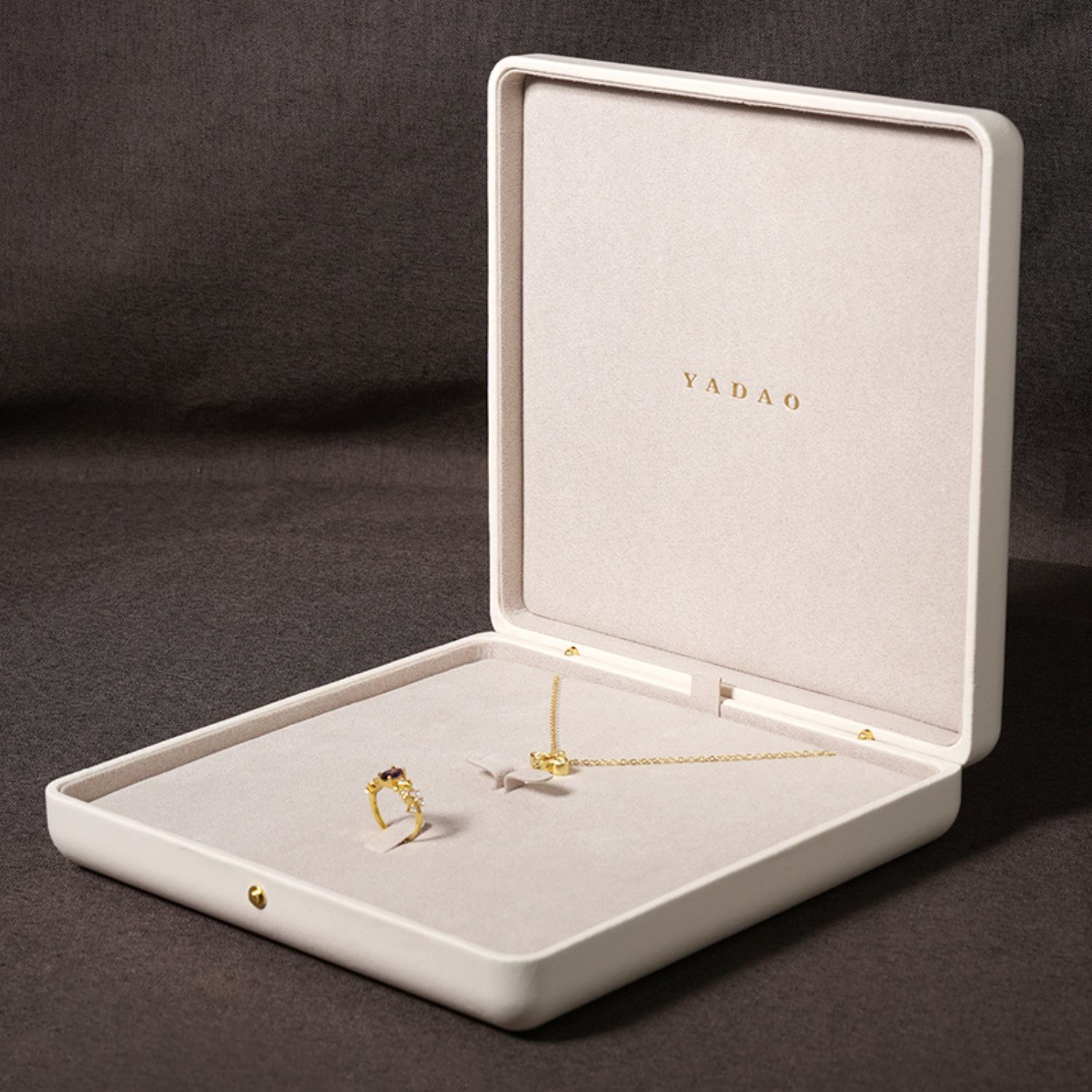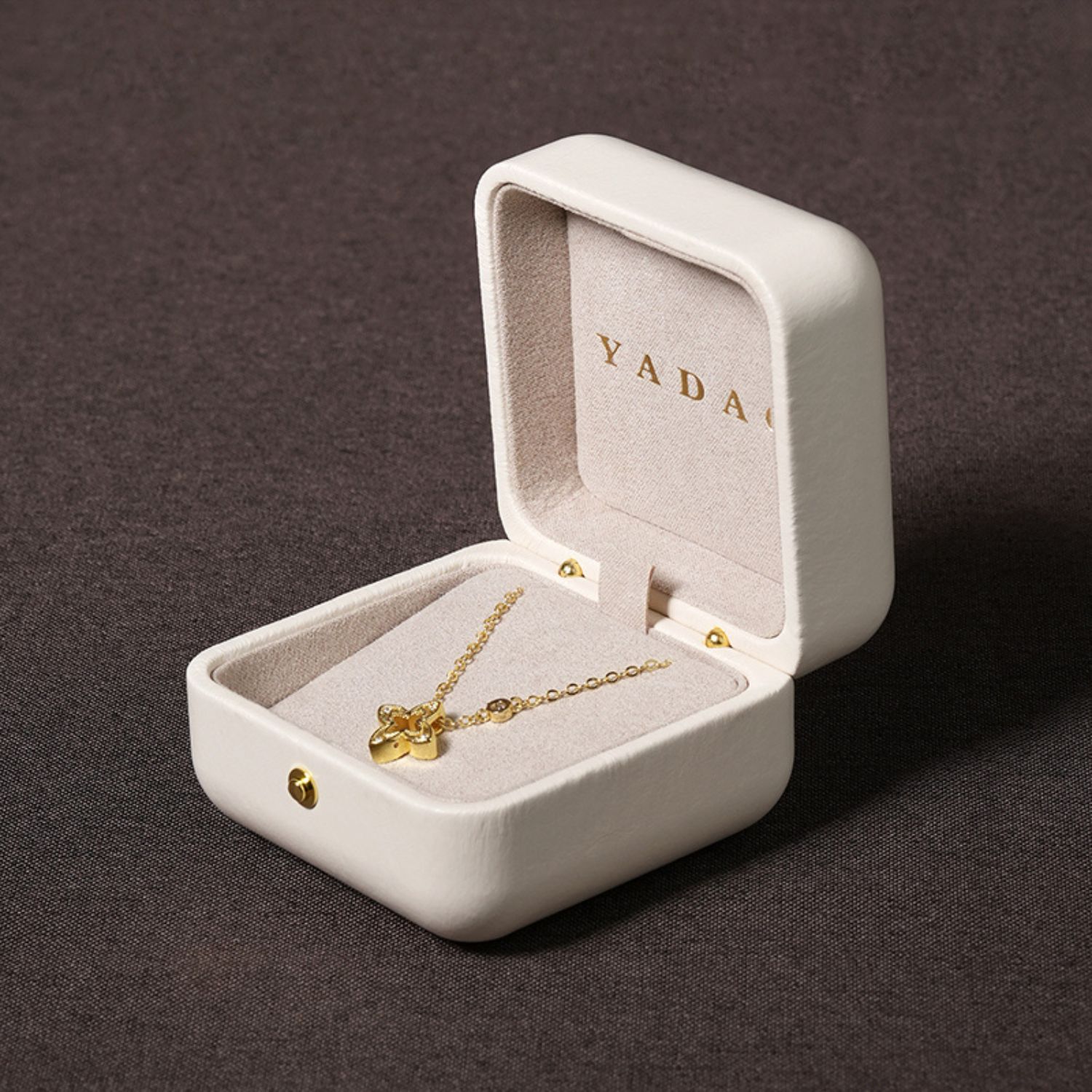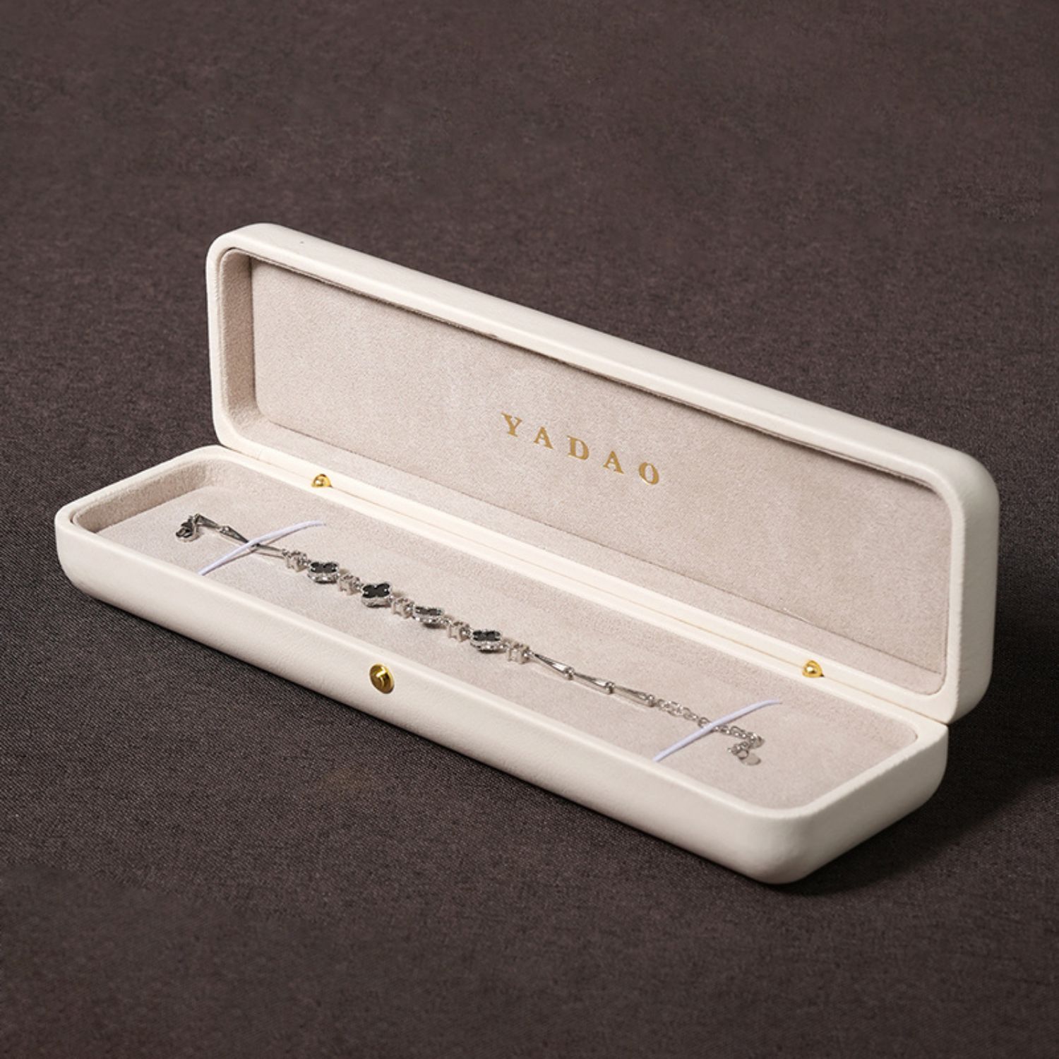 This high-quality leather jewelry box features a luxurious texture and is highly eco-friendly. The velvet lining is soft and smooth, providing superior protection for your jewelry. The rounded corners and button closure accentuate its distinctive design, enhancing the overall sense of luxury.