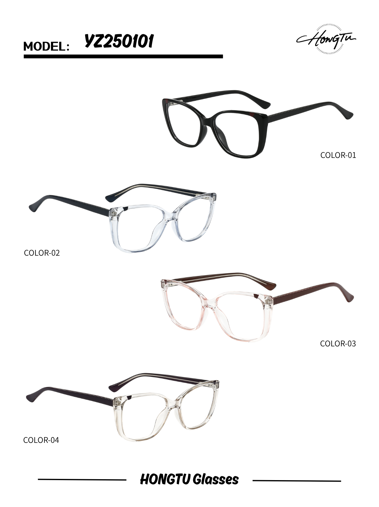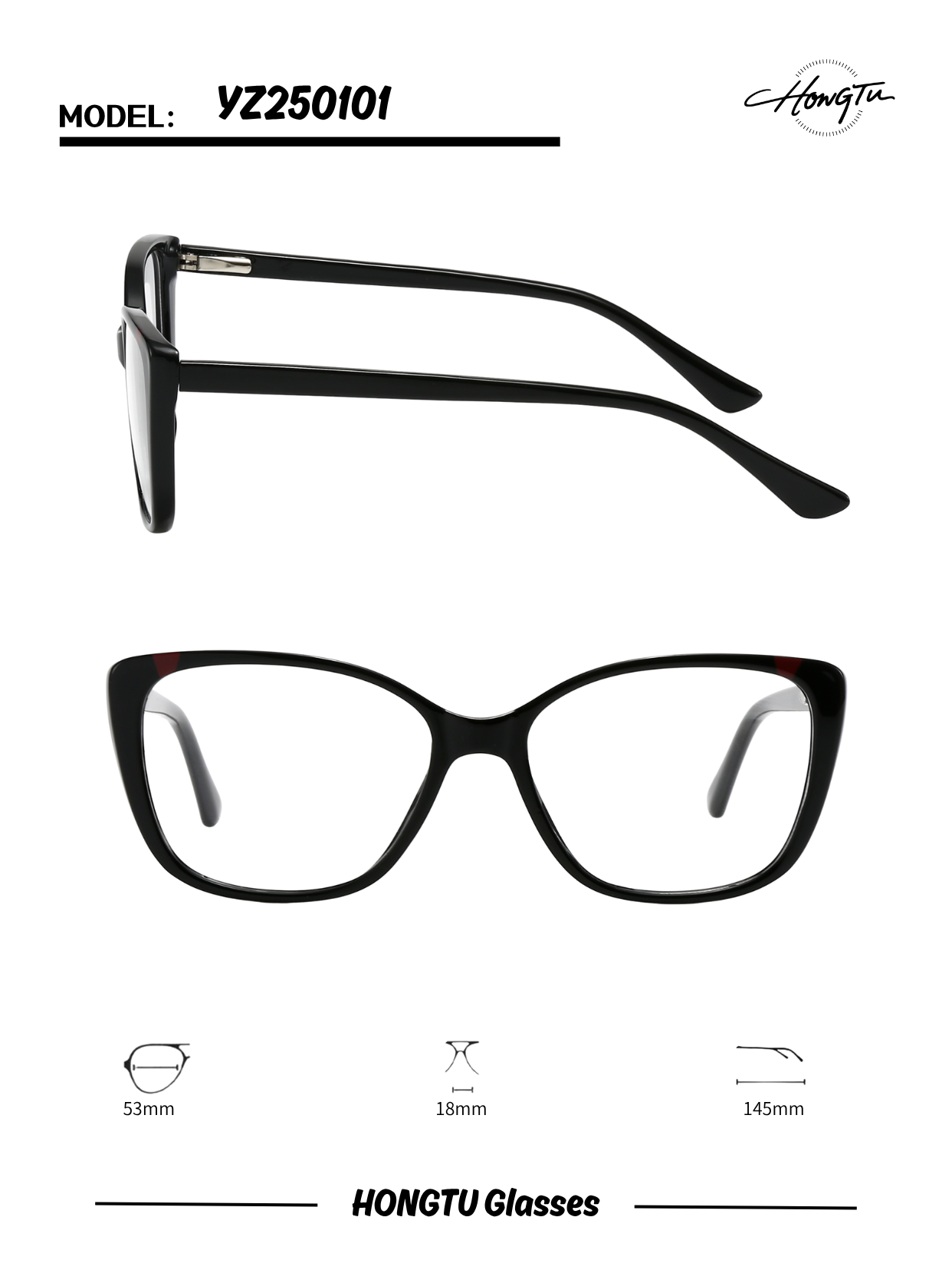 The HONGTU YZ250101 combines balanced proportions with versatile style. Featuring a 53mm lens width, 18mm bridge, and 145mm temples, it offers a comfortable universal fit. Available in four contemporary colors, this model is perfect for everyday wear, blending understated elegance with reliable comfort.