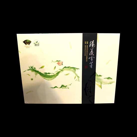 The displayed Yangxian Xue Ya Tea originates from Jiangsu. It is made with fine tea leaves in brisk green. This fragrant and tasty tea is a healthy alternative to other drinks.