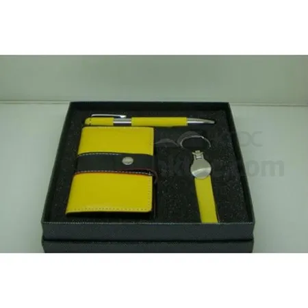 Yellow Color Gift Set Item (Name Card Holder, Pen and Keychain)