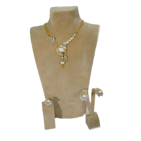 This is a stunning necklace in a yellow gold setting. It is well adorned with well-cut enamels and diamonds for a touch of elegance. This yellow gold necklace goes well with alluring evening dresses.