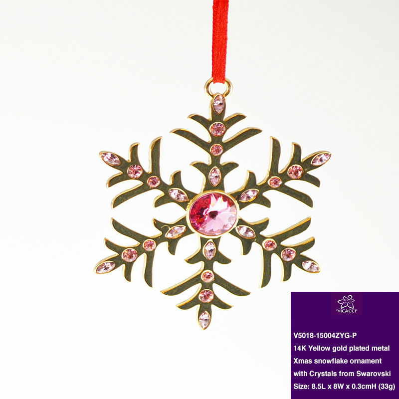• 14K Yellow gold plated metal Xmas snowflake ornament with crystals with Swarovski