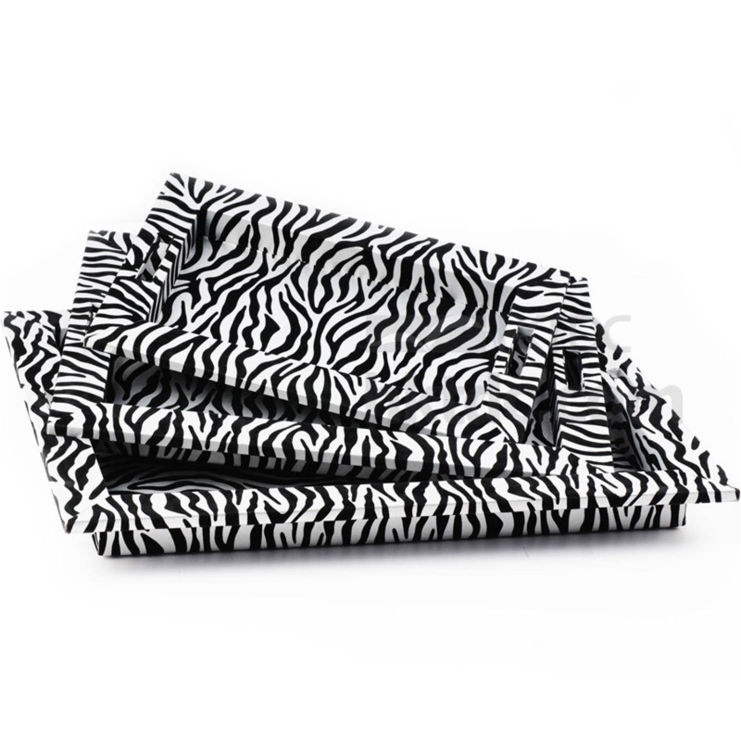 Zebra-Stripe Wooden Painting Serving Storage Tray