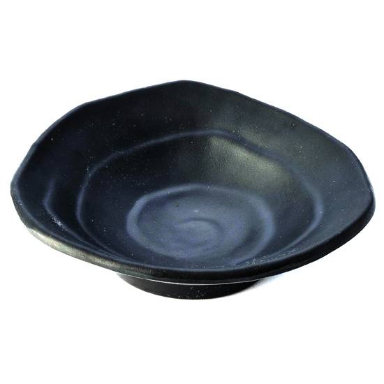 As shown is a zen plate which works well as a bowl too. The all black and irregular edged designs of this zen plate create a simple yet fashionable sense. The zen plate is known for its durability and quality.
