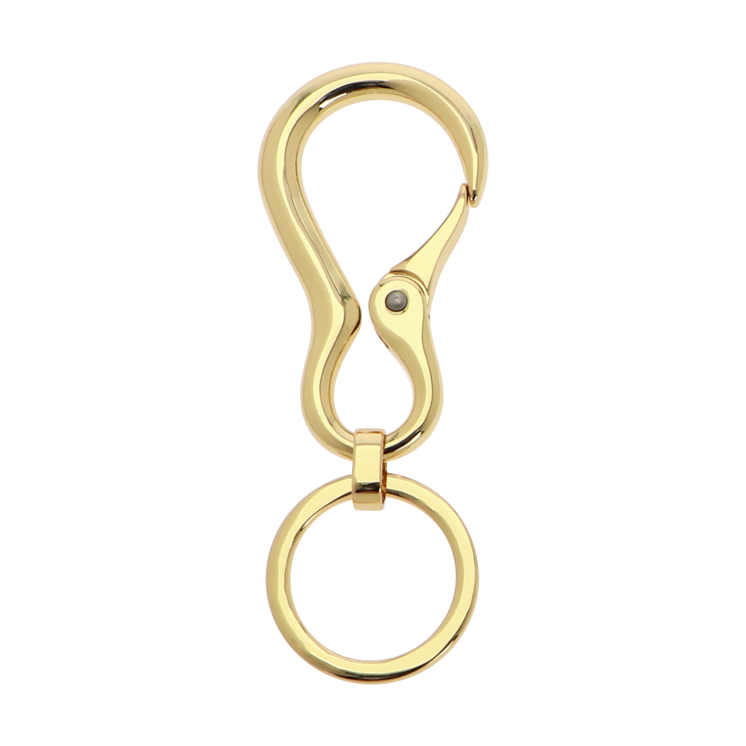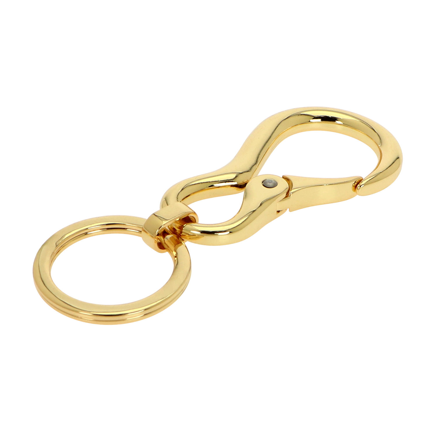 This zinc alloy buckle is equipped with a round steel flat key ring and comes in a gold toned design. It flaunts a high durability and is simple to connect and disconnect. The zinc alloy buckle can be easily attached to bags, garments, etc. and is excellent for holding straps and small accessories.