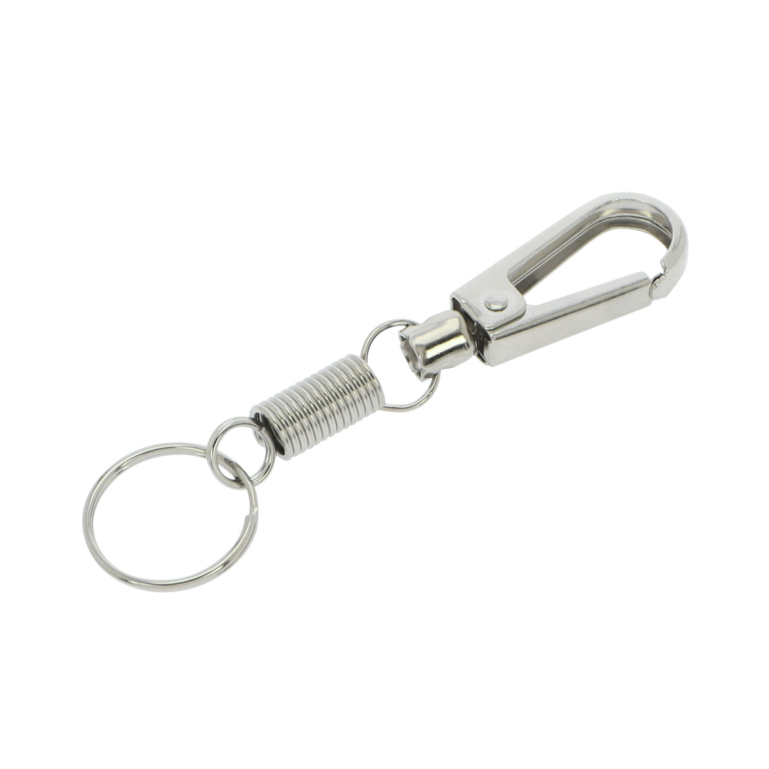 This snap hook is made of zinc alloy and is connected to a spring and a round split ring. It has a shiny metallic toned exterior and is strong enough to support a heavy load. The snap hook can keep your important items easily accessible and is convenient to attach to keys, backpacks, belts, etc.