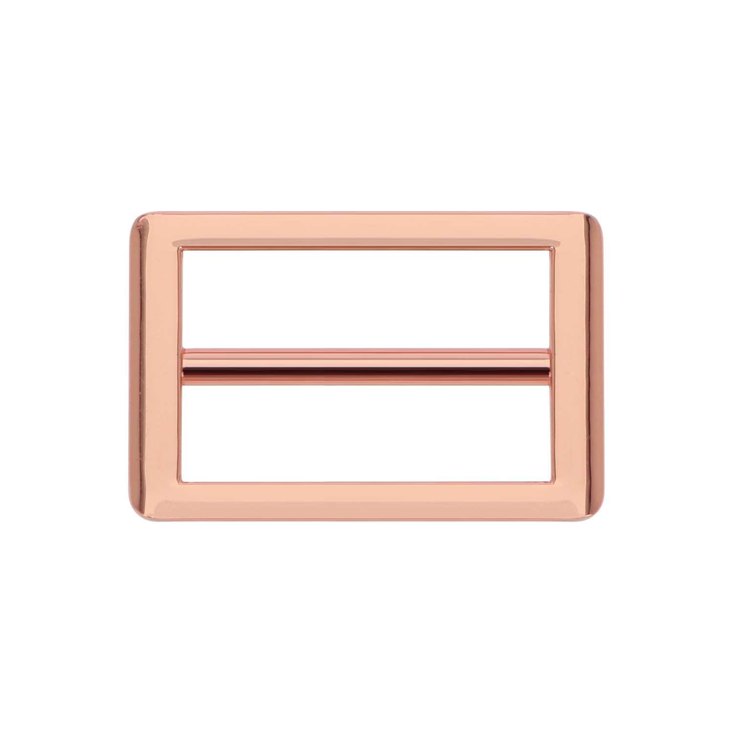 This adjuster slide buckle is made of zinc alloy and comes in a rectangular shape. It has a bar in the center and offers space for straps to pass through. The zinc alloy slide buckle provides convenient strap length adjustment and is a reliable hardware for handbags, backpacks and more.