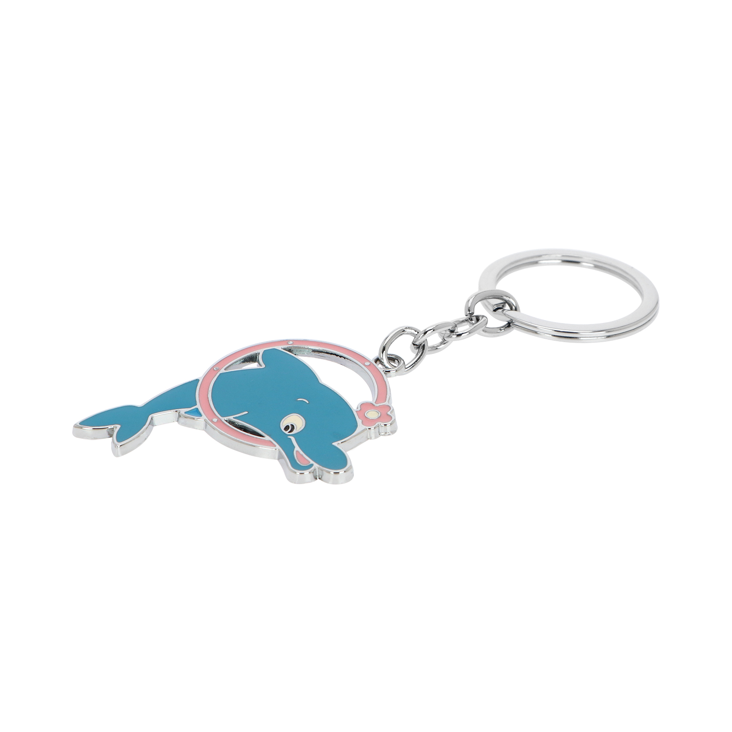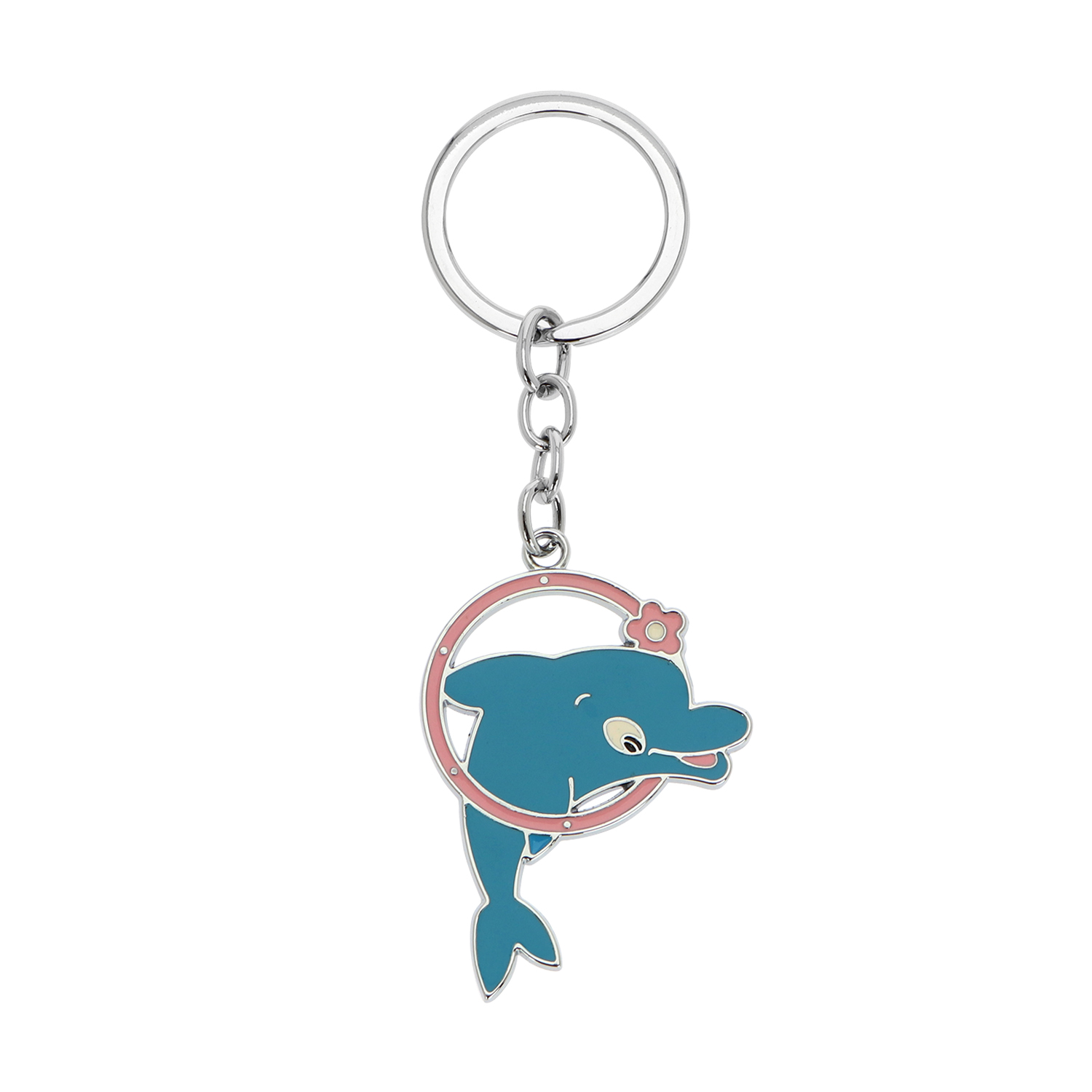 A superb and practical souvenir to include in your souvenir store collection, this key chain presents a steel flat ring and an interlocking chain of locks that dangle down to a vibrant key tag designed to resemble an energetic and friendly-looking dolphin. Let visitors and customers bring home with them the memory in near-by tourist spots with this cute and lovely keychain.