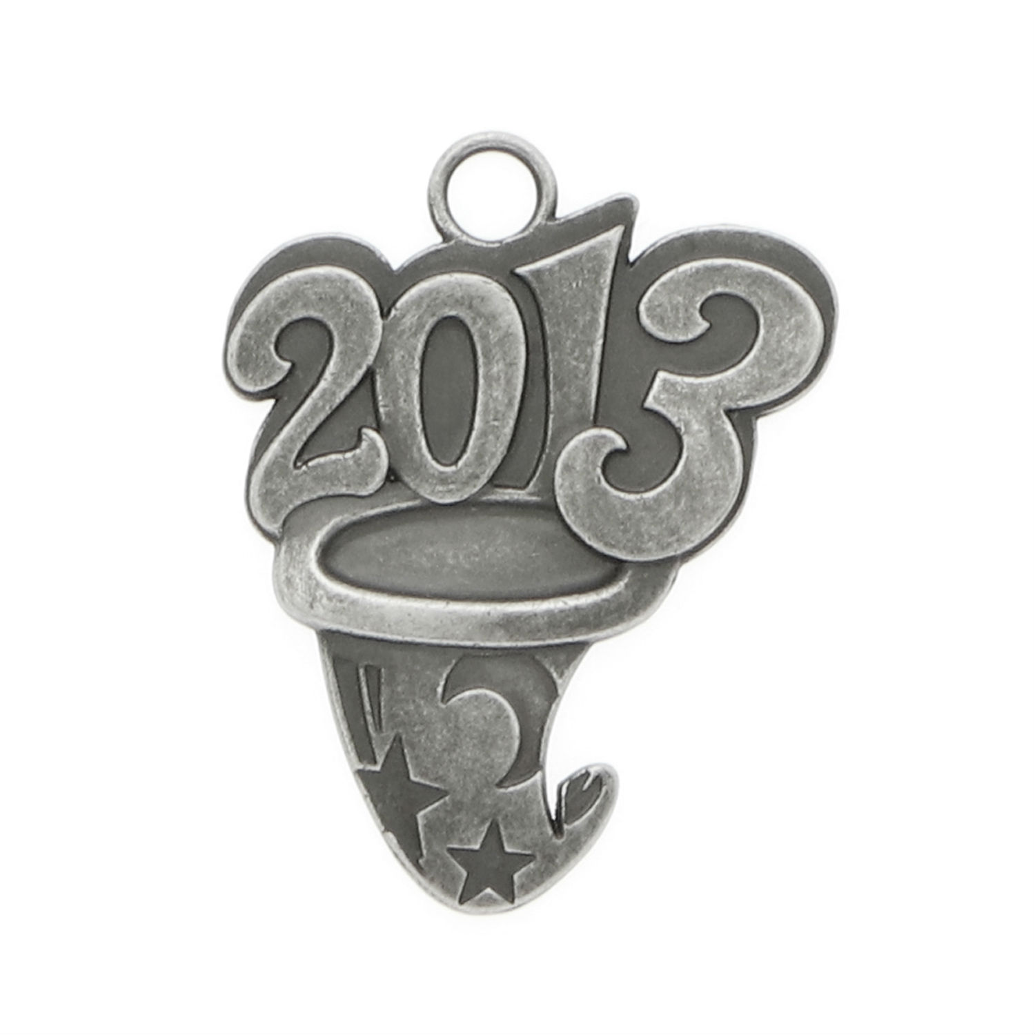 - A year tag that features an upside-down pointy hat and the words “2013”.