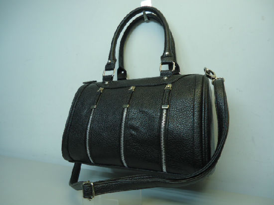 Silver teeth metal zipper decor pebble PVC barrel bag.