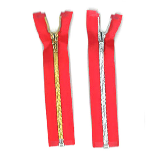 This series of zipper boasts a sharp look with contrasting colors. The red zipper tape is paired with golden and silver metallic teeth and puller. This playful zipper adds fun and surprises to your garments and bags.