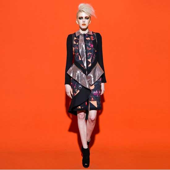 This chic ladies' dress is made of fabric of different colors and textures to create a futuristic, popular and unique style. The zippered dress is designed with long sleeves and a spread collar. The modern and trendy dress is perfect to show your bold and unique personality.