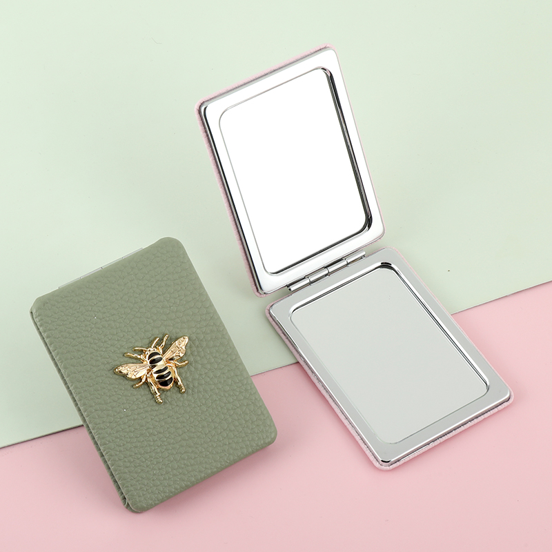 alloy bee design litchi PU materials custom makeup hand mirror manufacturer