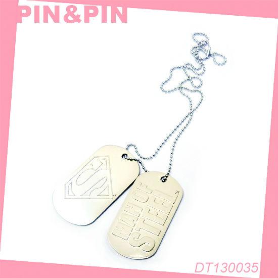 Available is an aluminum dog tag with a debossed logo. This piece is completed with a silver finish. The tag is also compliant with various standards.
