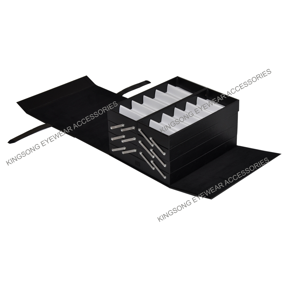 There are 8 entendable trays, each tray holding 6 pcs sunglass