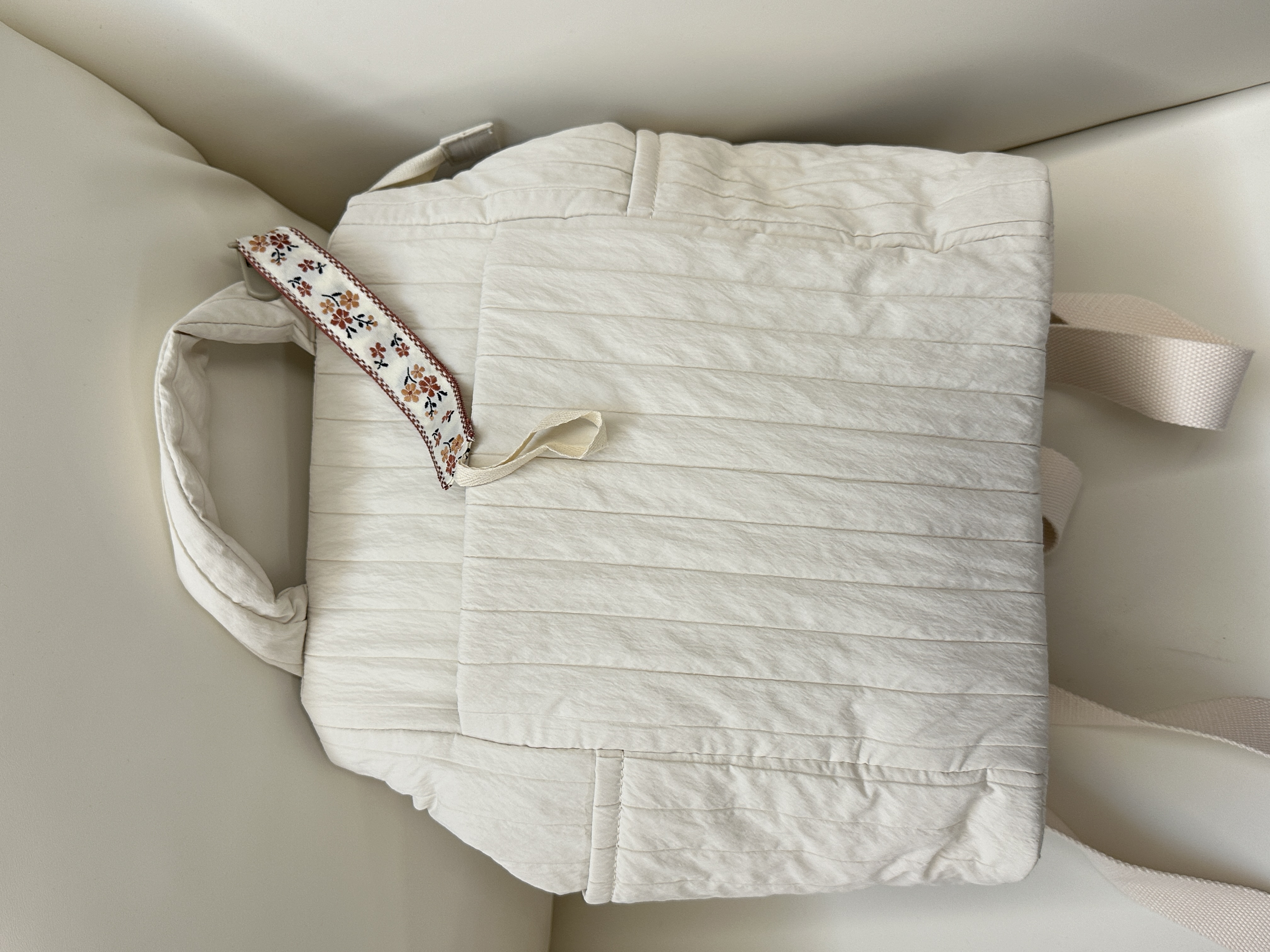 A stylish diaper backpack featuring refined floral accents, available for full customization in size and color.