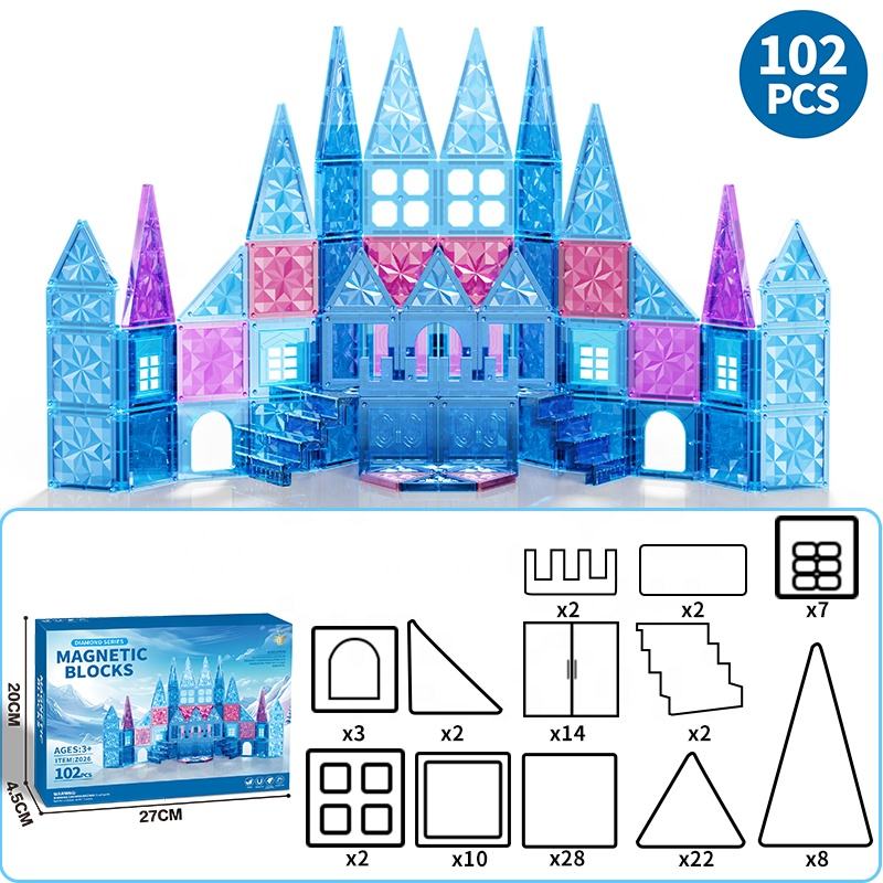 educational 3D magnetic toys Factory direct sales of high quality 102 pcs set Children's Diamond Magnetic Building blocks