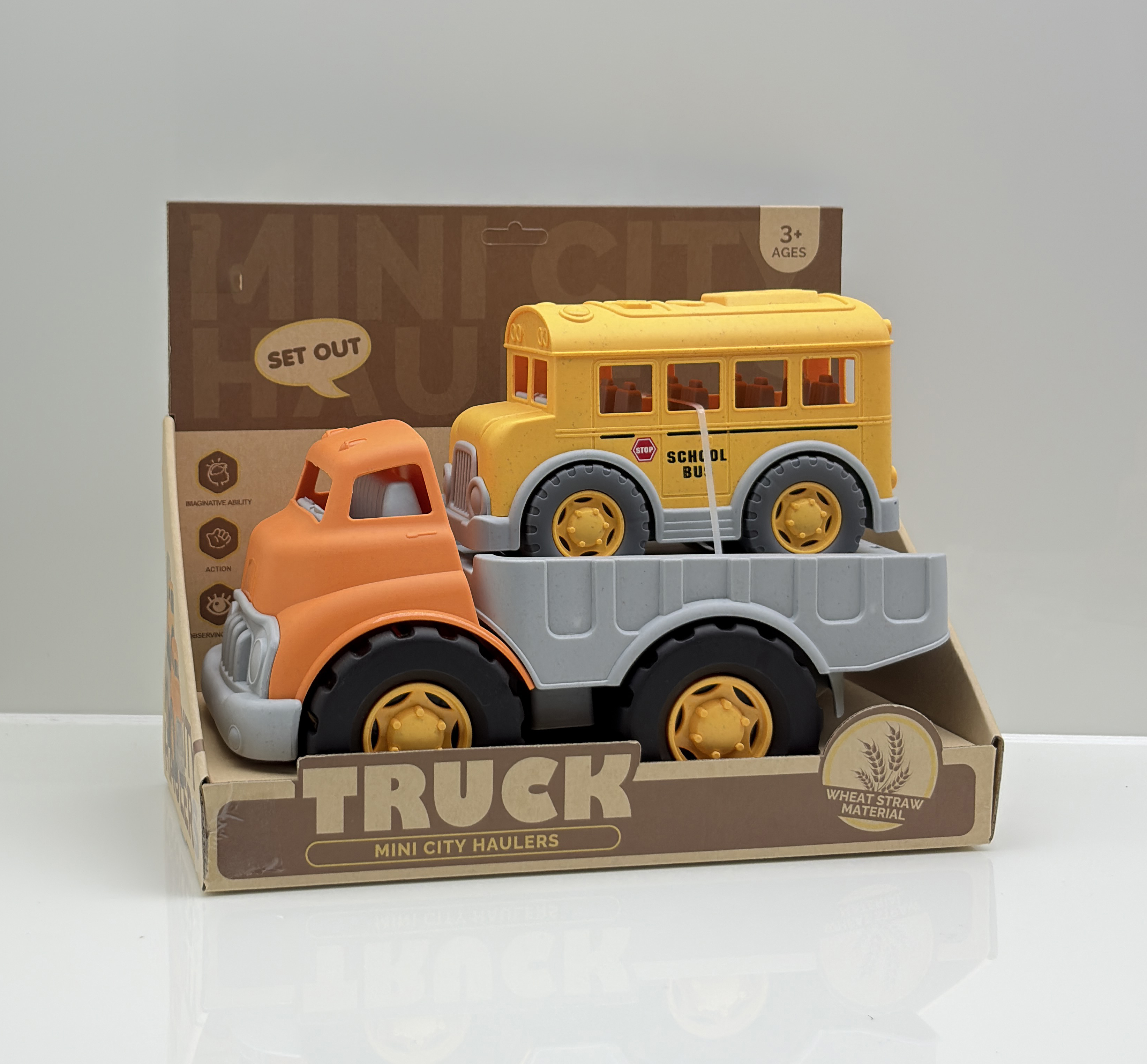 flat-bed trailer, wheat straw & pp material