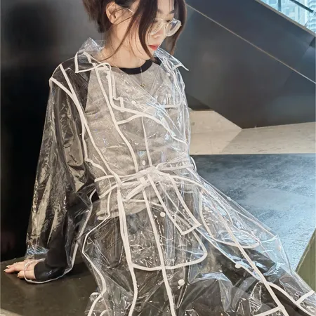 full printing fashionable polyester long raincoat