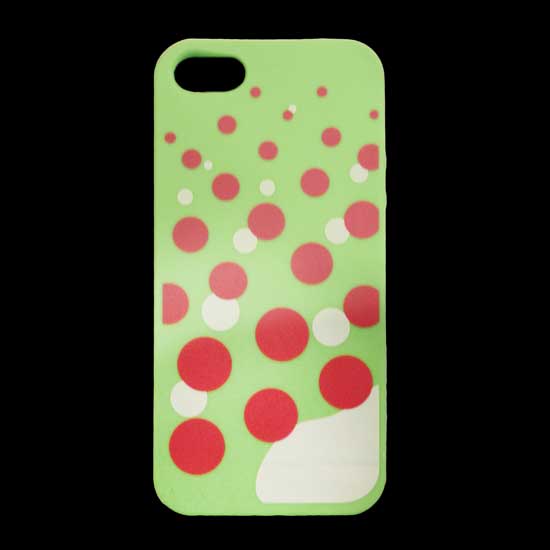 This is an iPhone case featuring a highly durable silicone structure. It is designed in bright green with contrasting red and black dot patterns, adding a fresh and sweet touch to this design. Various other designs in different materials are available for you to choose from.