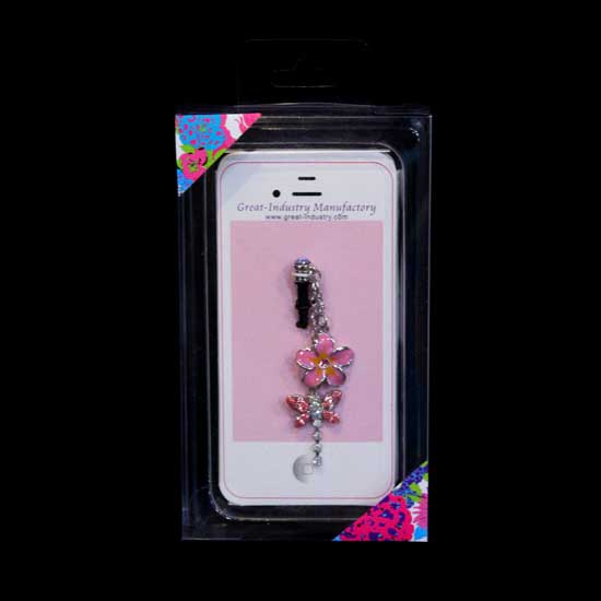 Shown here is a pin designed for the iPhone case. This iPhone case pin is made of quality zinc alloy material to ensure a durable structure. The flower and dragonfly patterns are added on the pin for a touch of extra glamor.